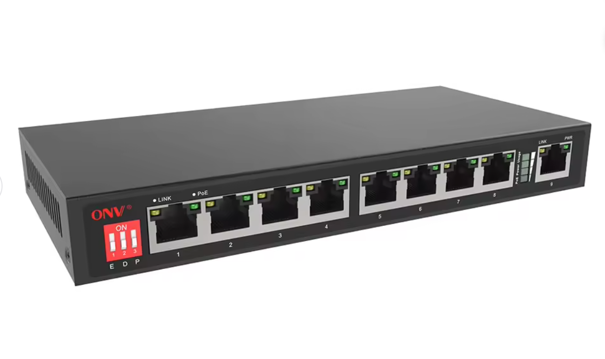 The ONV-POE31008PLD is an unmanaged AI PoE switch. It has 9*10/100Base-TX RJ45 ports Port 1-8 can support IEEE 802.3 af/at PoE standard. Single-port PoE power reaches 30W, and the max PoE output power is 110W. Port 1-8 can support the PoE watchdog function. When the port communication failure corresponds to the port POE will automatically restart, self-recover network communication, reducing manual intervention and maintenance. As a PoE power supply device, it can automatically detect and recognize the power-receiving equipment that meets the standard and supply power through the network cable. It can supply power to POE terminal equipment such as wireless AP, IP camera, VoIP, video access control, etc. Through the network cable, to meet the network environment that needs a high-density PoE power supply. It is suitable for hotels, campuses, parks, banks, hospitals, factories, and small and medium-sized enterprises to form a cost-effective network. Unmanaged mode, plug, and play, no configuration, easy to use.