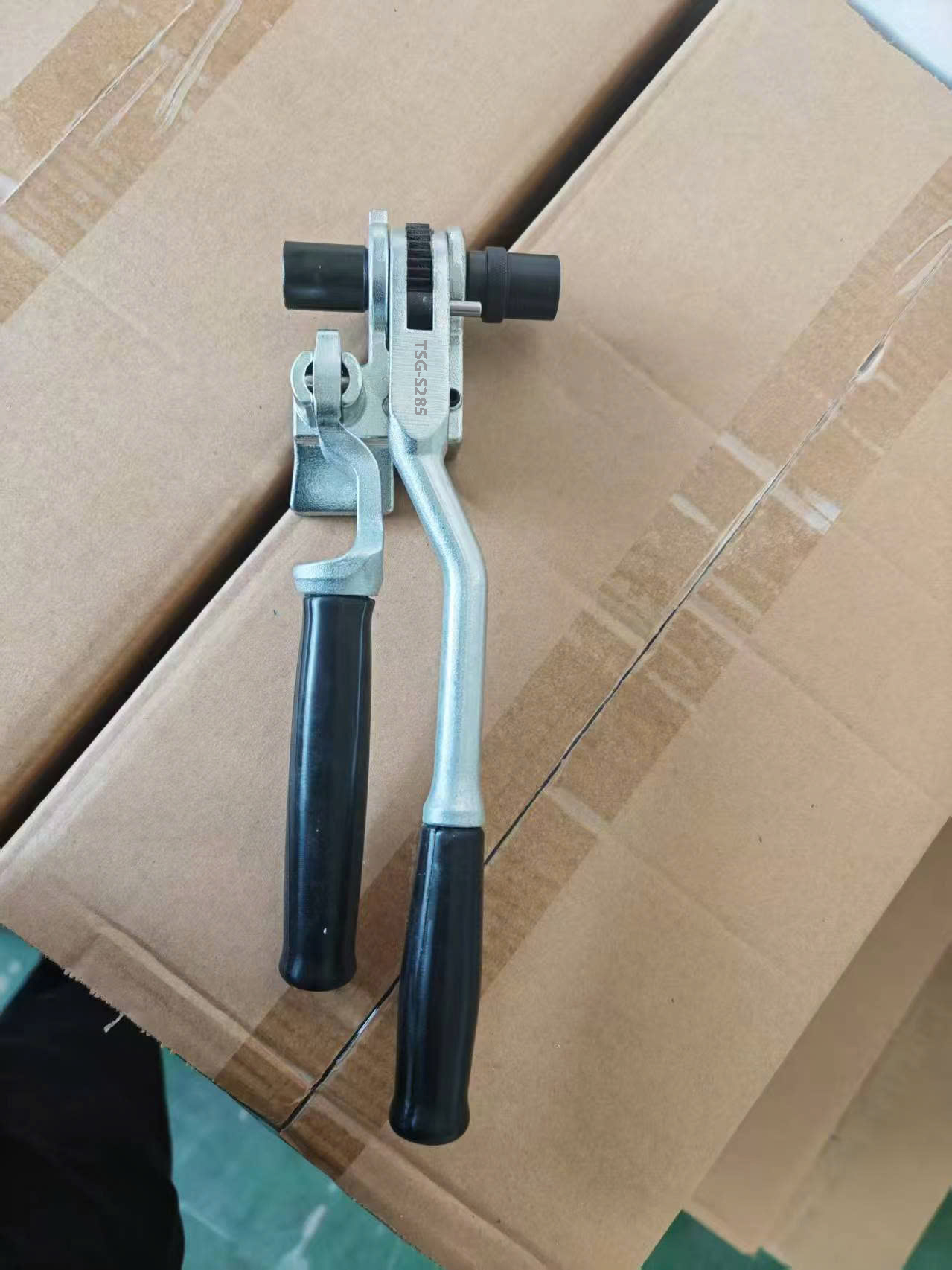 The TSG-S285 steel banding tool tighten straps 6-20mm wide, with a maximum thickness of 0.8mm. They offer good tightening force, are strong and durable, and are convenient for hanging cable boxes and electrical boxes on poles, and for strapping goods with stainless steel straps.
